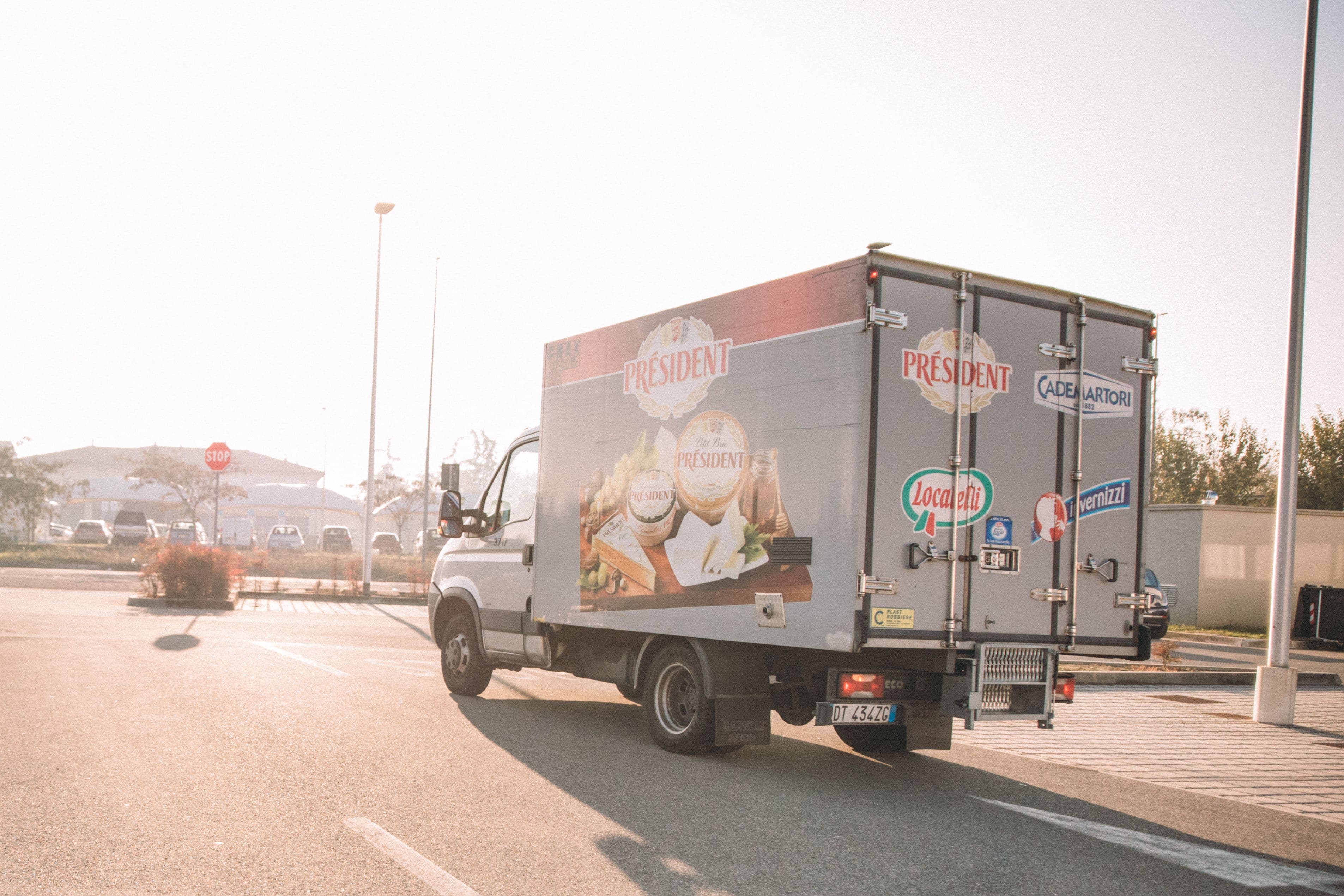 Furgoncini Galbani e Parmalat utilizzati per il trasporto.